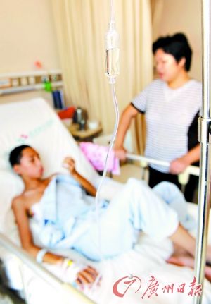 由于病情過重,11日凌晨1時許,便轉(zhuǎn)送康華醫(yī)院。記者隨后在康華醫(yī)院普胸科病房找到了肖雨。他正在艱難地喝湯!白詮姆伪淮檀┖,他就經(jīng)?人!毙び甑膵寢屨f。