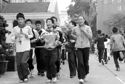 敬業(yè)中學(xué)地處黃浦區(qū)中心地段,是名副其實(shí)的“迷你校園”,1500名學(xué)生擠上一個(gè)小操場跑步,根本不現(xiàn)實(shí)。該校德育主任諸偉說,學(xué)校已做好“長跑方案”,擬用50米往返跑代替2000米長跑,另外還將開展“跳踢比賽”,即跳長繩、短繩、花式繩和踢毽子等活動!拔覀円哺杏X初中生一次性加到1500米有難度。 ”盧灣區(qū)中山學(xué)校副校長徐群力說,學(xué)校打算為長跑設(shè)一個(gè)“準(zhǔn)備期”,給學(xué)生一個(gè)適應(yīng)過程,“以前我們一直做兩遍操,現(xiàn)在改成做一遍,用一遍操的時(shí)間來跑步,天冷了,就用長跑替代做操。”每天下午3:30過后,學(xué)校還會以年級組為單位開展小型多樣的比賽,例如小型籃球友誼賽、跳長繩比賽和踢毽子比賽。