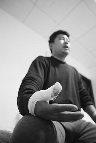 昨日(10月28日),記者在農(nóng)安縣醫(yī)院見(jiàn)到了崔老師,他眼眶青紫,臉腫著,已經(jīng)骨折的右手拇指纏著繃帶。據(jù)崔老師回憶,10月27日17時(shí)10分許,他接到班上女同學(xué)電話,說(shuō)有一群20左右歲的男青年來(lái)班上找人,這些人酒氣熏天,有的提著棒子,有的還拿著刀,氣勢(shì)洶洶地點(diǎn)名要找班上一名姓馬的同學(xué)算賬。崔老師接到電話立即跑向教室。此時(shí),距上晚自習(xí)還有近20分鐘,教室里有10多名同學(xué),其中有兩名男生。
