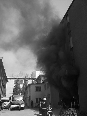 現(xiàn)場(chǎng)消防員稱(chēng),趕到時(shí),濃煙從該樓一層三、四米寬的大門(mén)口翻滾而出,整個(gè)大廳全是黑煙,能見(jiàn)度很低。幾十名師生站在樓門(mén)前。