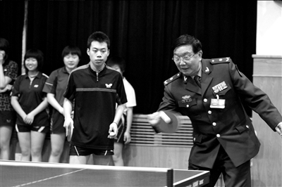 全國政協(xié)委員田伏洲對(duì)學(xué)生們說:“我們國家一直沒能獲得諾貝爾獎(jiǎng),曾經(jīng)陳景潤很有希望獲得,但他英年早逝讓我們扼腕,大家一定要養(yǎng)成體育鍛煉的好習(xí)慣,只有健康的身體才能更好地為國家服務(wù)。”了解到乒乓球是北京66中的特色體育運(yùn)動(dòng)項(xiàng)目,四位委員還參觀了學(xué)生們的乒乓球訓(xùn)練場。在學(xué)生們的邀請(qǐng)下,年過花甲的兩位將軍和兩位教授也拿起了乒乓球拍,與同學(xué)們對(duì)壘了一局乒乓球雙打。
