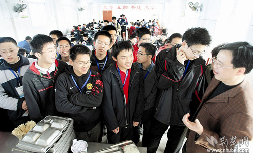 這些學(xué)生代表著中國中學(xué)生數(shù)學(xué)最高水平,他們將在武鋼三中進(jìn)行為期18天的集訓(xùn)和考試,最后6名勝出者將進(jìn)入國家隊(duì),代表中國參加今年7月在德國舉行的第50屆國際數(shù)學(xué)奧林匹克競賽。
