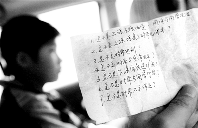 “下課瘋逗打鬧、經(jīng)常不完成作業(yè)……”記者在這張紙條上看到,甘天橋共羅列了李怡杰的七大調(diào)皮表現(xiàn)。王望霞說,這些問題孩子確實(shí)存在。但孩子犯錯,老師可批評教育,無權(quán)不讓孩子上學(xué)。