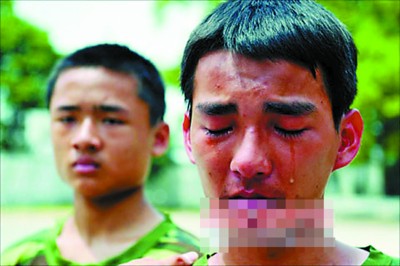 王博15歲,爸爸是政府官員,媽媽供職于銀行系統(tǒng),他因上網(wǎng)成癮、離家出走和早戀,今年1月19日被父母送入啟德學(xué)校至今。他告訴記者,剛進來的時候很害怕,像進了勞教所一樣。他在禁閉室挨打了,那是因為 “站久了,瞌睡,一栽一栽的,牙齒磕住嘴唇都磕破了,后來,瞌睡得支撐不住了,站也站不穩(wěn),頭撞在了墻上,教官發(fā)現(xiàn)后,就用教鞭打我手掌;在背《啟德學(xué)校學(xué)員守則》時,背漏一個字,也要挨打,還好,我半個小時就背會,順利過關(guān)。 ”