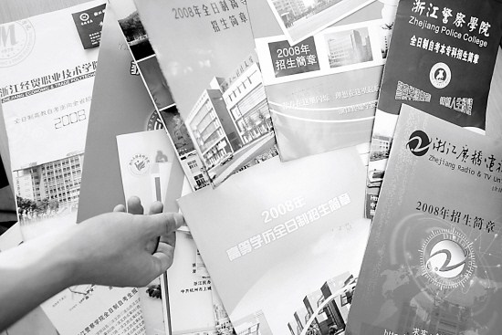 她舉例說,她手上有一份浙江經(jīng)貿(mào)職業(yè)技術(shù)學(xué)院全日制高教自考的招生簡章,封面和簡章內(nèi)主要篇幅都在介紹浙江經(jīng)貿(mào)職業(yè)技術(shù)學(xué)院的優(yōu)勢和下沙新校區(qū)!翱缮厦娴膱竺攸c在文一路,而上課的地方卻在三墩!