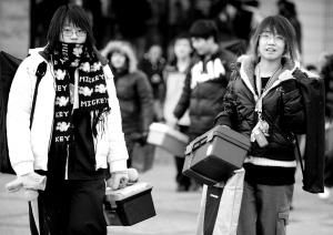 昨天8時,北京城市學院考點前已擁擠著近百名冒著嚴寒陪考的家長,一些手提畫板、顏料盒等繪畫用具的考生陸續(xù)走進考點。據了解,網上報考美術類專業(yè)的考生為7130人。首都師范大學、北京工業(yè)大學、北京服裝學院、北京城市學院4所高校設有考場。
