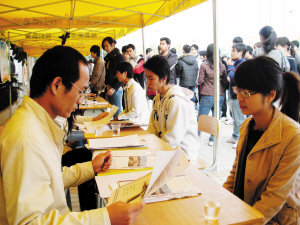 從11月底開始,校園招聘會在廣州各高校如火如荼地進(jìn)行。截至目前為止,共有10多場針對本?粕、研究生的招聘會舉行。日前,以房地產(chǎn)及相關(guān)行業(yè)為主,以IT行業(yè)及相關(guān)產(chǎn)業(yè)為輔,面向從化6所高校的大型綜合招聘會在廣州城建職業(yè)學(xué)院舉行。據(jù)悉此次參加招聘會共邀請138家企業(yè)參加,實(shí)際到場單位近120家,共提供崗位1000多個,約5000多個職位,吸引了從化地區(qū)6所學(xué)校近萬名應(yīng)屆大學(xué)畢業(yè)生參加。