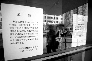 貼在玻璃門上的通知說:“根據(jù)京建住(2008)225號(hào)文件規(guī)定,自2008年4月8日之前簽訂購房合同的已購經(jīng)濟(jì)適用住房上市出售,須取得契稅完稅憑證或房屋所有權(quán)證滿5年后,可以按照市場價(jià)格出售,產(chǎn)權(quán)人應(yīng)按出售價(jià)格的10%補(bǔ)交土地收益等稅款。”