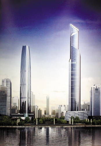 “這里有世界上最高的酒店大堂。從地下乘坐電梯到酒店大堂只需50秒到一分鐘就可以俯視全城,電梯平均上升速度達每秒約9米!痹O計師介紹,東塔的設計還具有使用率高和綠色環(huán)保的特點,其外立面將采用玻璃幕墻加石材的復合建材,可以有效減少太陽光的反射。