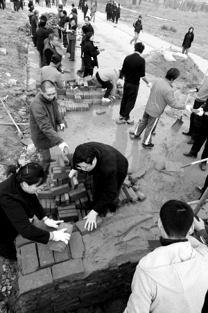 昨日下午,大興區(qū)舊宮親親我家小區(qū)內,上百名業(yè)主在小區(qū)東南門砌墻、挖路,以此向開發(fā)商抗議。