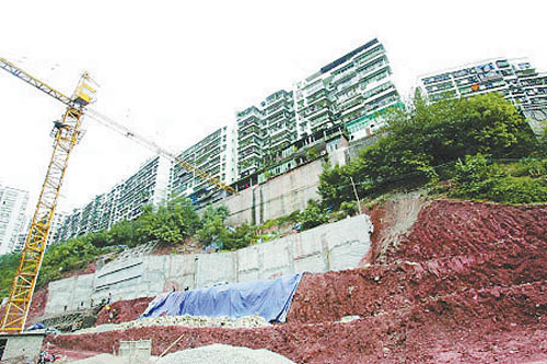 一年前,施工隊(duì)陸陸續(xù)續(xù)地來(lái)到這里,將這里的常青樹(shù)一一砍倒。接著,施工隊(duì)開(kāi)來(lái)推土機(jī),鏟平了小土坡。他們用了一天的時(shí)間,就在這里搭起了一整片工棚。居民們聽(tīng)說(shuō),這里將建起一幢高達(dá)16層的樓房,一個(gè)叫重慶市運(yùn)發(fā)房地產(chǎn)開(kāi)發(fā)有限公司的單位則是樓盤(pán)的承建者。