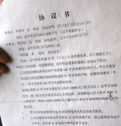 記者問,“聽說這套房子已經(jīng)漲成4300元/平方米了!薄皾q成4300元/平方米了?我不知道!這是人家的事,與我無關(guān)!绷_勇凜然地說:“既然事前已經(jīng)說好了,雖然房子名義上是我的,但我只會要那1萬塊錢,不想多要!”