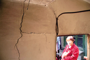 “原來是租出去的,現(xiàn)在我把租戶給勸走了,怕房子塌了傷著人!睆埮空f。記者了解到,目前,二街社區(qū)雞鴨市胡同3號(hào)院、西醋房胡同4號(hào)院等6個(gè)大院的13戶居民房屋開裂,而且情況在不斷惡化。