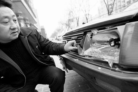 昨天中午,在“翠園·錦榮世家”小區(qū)的地下車庫前,業(yè)主馬志宏捂著自己的左眼,激動地說,前晚8時許,他像往常一樣將車開到小區(qū)的地下車庫,卻被看車人告知他沒有停車卡不能進入。馬志宏詢問原因得知,小區(qū)物業(yè)當天下午開會制定了一條規(guī)定——沒有購買停車位,沒有小區(qū)停車卡,不能將車停入車庫。隨后,雙方發(fā)生口角,并產(chǎn)生肢體沖突!芭赃呎玖宋辶鶄保安,一看我跟看車的吵架,就一起上來打我,把我的左眼打傷了!瘪R志宏松開手,記者看到,他的左眼明顯腫脹,呈青紫色,眼中還布滿血塊。馬志宏向記者出示了鄭州市第一人民醫(yī)院的診斷證明:“左眼瞼明顯腫脹、淤血,瞼結(jié)膜明顯充血,球結(jié)膜大片出血、水腫,角膜水腫……左眼視力明顯下降,為0.25!薄八麄冇锌啥嗳,把我的車也砸了!敝钢\噹烨暗囊惠v奧迪車,業(yè)主曹明奇對記者說,和馬志宏一樣,前晚10時許,他來停車時也被告知沒有停車卡不能停車。曹明奇說,他看暫時無法協(xié)商,就想先把車里的孩子送回家,沒想到剛走出不遠,就有七八個不明身份的人把他的車砸了。記者看到,車前兩個大燈和一個尾燈全被砸碎(如上圖),車身上也有許多擦痕。