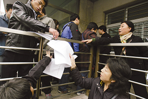 而位于東花市審核點的街對面,恰巧是崇文區(qū)新開設(shè)的審核點,這里已經(jīng)排起了長隊。但這里并不能接受經(jīng)適房的申請,屋內(nèi)的幾個窗口只是在接受市民咨詢。