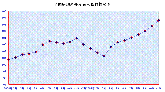 由國家統(tǒng)計局按月計算并對外發(fā)布的“國房景氣指數(shù)”,是全國房地產(chǎn)開發(fā)景氣指數(shù)的簡稱,由房地產(chǎn)開發(fā)投資、本年資金來源、土地開發(fā)面積、房屋施工面積、商品房空置面積和商品房平均銷售價格6個分類指數(shù)構成。是全國房地產(chǎn)開發(fā)綜合發(fā)展水平的客觀反映。