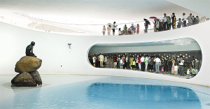 小美人魚銅像首次走出國門來到上海世博會,騎著自行車游覽展館獨樹一幟……開幕至今,丹麥館給所有參觀者留下了深刻的印象。丹麥館就像一本打開的活生生的童話書,童話書里有丹麥的現在和將來。