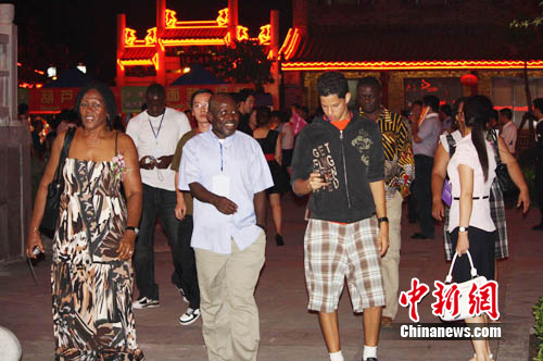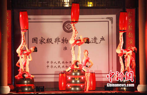 18日晚間,外賓們在鹽城水街參加游園活動,國家非物質(zhì)文化遺產(chǎn)淮劇和雜技給外國朋友們奉上了一臺具有鹽城地方文化特色的視覺饕餮盛宴。鹽城市雜技團的雜技《綻放的蓓蕾》和《轉(zhuǎn)動的彩虹》美輪美奐,體現(xiàn)了鹽城雜技的特色和文化藝術(shù),驚險而又漂亮的動作贏得了觀眾們不時的喝彩。江蘇省淮劇團的淮劇表演可謂是文武全套。國家一級演員黃萍和薛建華的文戲《預(yù)備員》選段,向外賓展示了淮劇韻味十足的唱腔和優(yōu)美的身段。而展示武戲《將軍令》的表演者皆是16歲左右的淮劇新生代學(xué)生,他們基本功扎實的武戲表演惹得臺下觀眾叫好聲不斷。