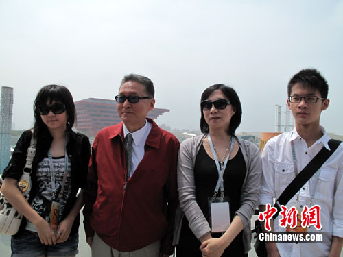 中新網(wǎng)8月28日電 臺灣著名作家李敖今日攜全家繼續(xù)上海世博行。從上午九點(diǎn)半開始,李敖一行先后參觀了西班牙館、意大利館和沙特館,領(lǐng)略異國風(fēng)情和文化。在沙特館頂部的觀景臺,他以中國館為背景與全家合影留念。