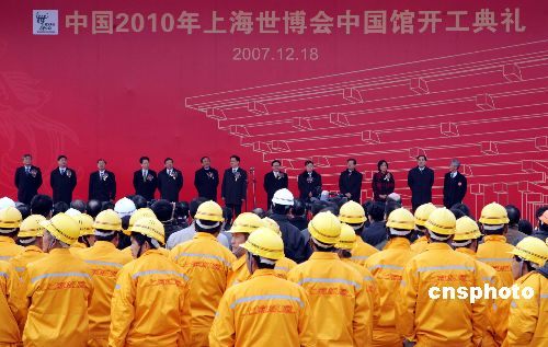 十二月十八日,凝聚全球華人智慧的中國二0一0年上海世博會中國館在上海黃浦江畔舉行開工典禮。據(jù)介紹,作為上海世博會的永久性場館之一,總用地面積為六點五二公頃,總預(yù)算十五億元人民幣。整個中國館區(qū)由國家館、地區(qū)館、港澳臺館等三個部分組成。中新社發(fā) 潘索菲 攝