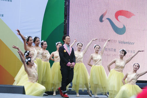 今天上午,“志愿世博 文明上!敝袊2010年上海世博會志愿者標(biāo)志、口號、歌曲發(fā)布儀式暨迎世博、講文明、樹新風(fēng)“三五”志愿服務(wù)集中大行動(dòng)在上海市五卅紀(jì)念廣場隆重舉行。