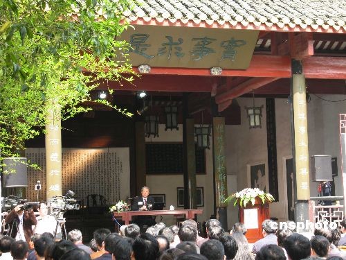 上海世博會(huì)首場(chǎng)專(zhuān)題論壇于四月二十日在長(zhǎng)沙岳麓書(shū)院開(kāi)講,主題為“環(huán)境與城市發(fā)展”。著名學(xué)者成思危、中國(guó)跨國(guó)公司研究會(huì)會(huì)長(zhǎng)王茂林、上海世博會(huì)執(zhí)委會(huì)副主任周漢民依次發(fā)表演講。中新社發(fā) 劉雙雙 攝