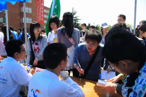 5月1日,中國(guó)2010年上海世博會(huì)倒計(jì)時(shí)一周年的日子,上海交通大學(xué)“中國(guó)2010年上海世博會(huì)”志愿者招募啟動(dòng)暨上海交通大學(xué)上海世博會(huì)工作站成立儀式,在交大閔行校區(qū)內(nèi)舉行,1000余名學(xué)生來(lái)到現(xiàn)場(chǎng)進(jìn)行咨詢。
