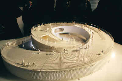 丹麥館位于世博園C區(qū),與芬蘭、冰島、挪威和瑞典等國的展館毗鄰而居,共同構(gòu)成一派“北歐風(fēng)情”。在展館內(nèi)你的孩子不僅能在操場上自由自在地玩耍,而且還能享用一頓野餐,并讓“海港”的海水輕拂腳趾。丹麥館環(huán)繞“海港”而立。整座建筑是一個巨大的鋼結(jié)構(gòu),其雙車道螺旋坡道包含人行道和自行車道,從地面盤旋兩次到達12米的高度,又盤旋而下回到地面。因此,您能夠用兩種不同的速度,由表及里地欣賞丹麥館——您既可以安步當(dāng)車,細細體味周遭的一切,也可以騎上自行車,風(fēng)馳電掣般地掠過城市。展館的屋頂覆蓋一層淺藍的人工材料,展館內(nèi)的地面也設(shè)有這種藍色自行車道,可供自行車穿行于整棟建筑之內(nèi)。除此之外,丹麥藝術(shù)家設(shè)計了一種互動長凳安放于丹麥館的里里外外,白色的鋼制長凳也可隔開行人和自行車。
