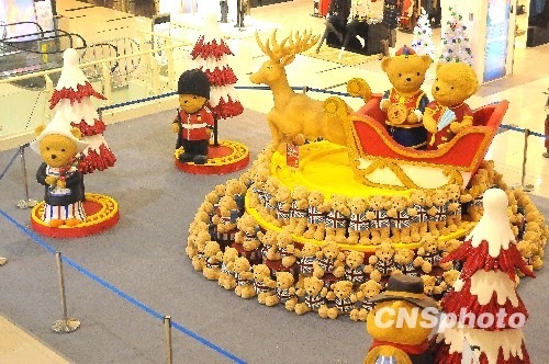 12月2日,在“環(huán)游世界博覽會(huì)-經(jīng)典泰迪展”上,中國(guó)金童玉女造型、英國(guó)憲兵服造型等造型不一的泰迪熊登堂亮相,組成埃及金字塔、英國(guó)白金漢宮、巴黎埃菲爾鐵塔、美國(guó)自由女神像等造型。該展覽希望能讓市民了解更多的世界各地的文化風(fēng)俗,同時(shí)也為即將到來(lái)的圣誕、元旦增添歡樂(lè)的氣氛。中新社發(fā) 引煒 攝
