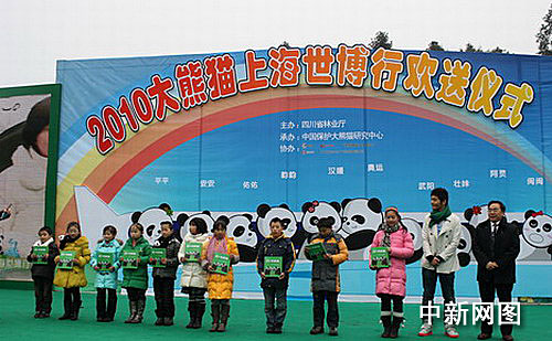 5日上午8點(diǎn),“2010大熊貓世博行”歡送儀式在雅安碧峰峽基地舉行,儀式后10只世博熊貓于9:30左右啟程前往成都,將于下午13:30-14:00之間從成都雙流機(jī)場乘專機(jī)飛往上海。