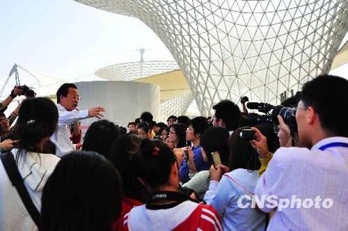 2月24日,上海世博會事務協(xié)調(diào)局透露,已有近萬名中外記者報名采訪上海世博會,其中境內(nèi)媒體報名逾8000人。自去年12月18日上海世博會媒體報名注冊工作啟動以來,境內(nèi)外媒體采訪報道上海世博會的意愿強烈,紛紛致電致函世博局詢問有關報名事宜。圖為2009年10月,150名世博注冊大學生記者候選人實地采訪建設中的世博園區(qū),角逐100個正式注冊記者的名額。中新社發(fā) 沈春琛 攝