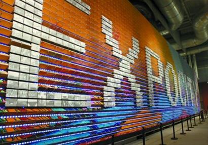 值得一提的是,在場館靠近出口處,設(shè)有24臺電子指紋留言機(jī)。參觀者可以在電子屏上任意用手指寫下自己想說的話語。所寫的文字將會自動被計(jì)算機(jī)記錄并打印出精美的紀(jì)念票券,同步通過投影儀顯現(xiàn)在兩邊墻上,進(jìn)行深入互動。(林莉莎 俞陶然)