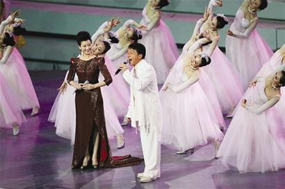 意大利盲人歌唱家安德烈·波切利唱起經(jīng)典的《今夜無(wú)人入眠》,在他的身邊,一名穿著紅衣的中國(guó)小女孩,懷抱著海寶,笑靨如花。一曲終了,小女孩將海寶交給安德烈·波切利,他們熱烈的擁抱將慶典推向高潮。