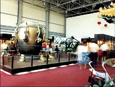 展廳的展出內容以3條線為主。一是從火龍出水、一窩蜂等古代火器到長2捆等長城系列火箭。二是從指南針的發(fā)明到鄭和下西洋航海,中國的海上絲綢之路。三是活字印刷、造紙法、銅車馬、兵馬俑、地震儀、簡儀等中國古代文明與科技。