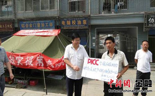中新網(wǎng)8月11日電 中國(guó)人保財(cái)甘肅省分公司在舟曲理賠服務(wù)點(diǎn)組織召開現(xiàn)場(chǎng)理賠會(huì),支付首筆共計(jì)1萬(wàn)1千元災(zāi)后理賠款。