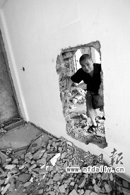“目前24棟已經(jīng)完全被拆除,25、26、27棟主體結(jié)構(gòu)被破壞,29棟拆成了‘神仙洞’,31棟拆得漏雨,被稱為‘水簾洞’,幾十戶只好出去租房。在2009年11月還有50余戶居住、30多戶業(yè)主未簽約的情況下就開始拆遷,破壞小區(qū)達(dá)74天之久,已經(jīng)嚴(yán)重違法。”顧先生表示。