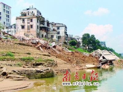 前晚,封開縣副縣長梁漢榮站在泛光的賀江邊,看著像“多米諾骨牌”一樣倒掉的8棟樓房,對南方日報記者說:“這是不幸中的萬幸!
