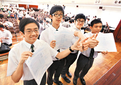 另一所傳統(tǒng)名校喇沙書院,約有30人取得6優(yōu)或以上的拔尖資格,較去年的26個有所增加。當中2名屬“10優(yōu)狀元”。剛退休的校長王仁杰昨一早回到學(xué)校,與學(xué)生共度發(fā)榜時光,其就讀喇沙的兒子考得4A3B3C佳績,他十分滿意。兩名喇沙狀元郭凱杰和林凱健,前者指傾向修讀與商科有關(guān)科目,后者則已立愿讀醫(yī)。