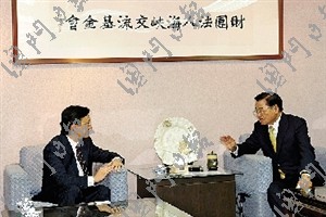 譚俊榮二十四日下午在臺(tái)北禮節(jié)性拜會(huì)海基會(huì)董事長(zhǎng)江丙坤,受到熱情接待。雙方深入交換了深化澳臺(tái)關(guān)系發(fā)展,促進(jìn)兩地文化、觀光、旅游、經(jīng)濟(jì)等交流的意見(jiàn)。江丙坤明確表示,支持特區(qū)政府推動(dòng)澳臺(tái)關(guān)系發(fā)展。愿意發(fā)揮;鶗(huì)的作用和影響力,協(xié)助特區(qū)政府與臺(tái)灣有關(guān)方面磋商在臺(tái)設(shè)立辦事處及澳門(mén)高校學(xué)歷認(rèn)可等事宜。