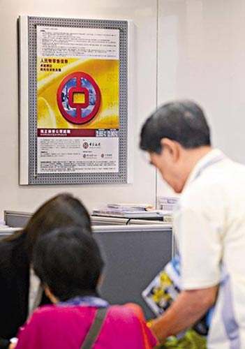 交銀香港荃灣分行昨日設(shè)立特定人民幣債券銷售柜臺(tái),中午時(shí)認(rèn)購(gòu)隊(duì)伍至少同時(shí)有6人在輪候,要等候30至60分鐘,F(xiàn)場(chǎng)亦有一對(duì)老夫婦礙于附近中銀分行出現(xiàn)排隊(duì)人潮,專程而來才發(fā)現(xiàn)不能開投資的聯(lián)名戶口。有新客戶到中銀筲箕灣分行買人民幣債券,現(xiàn)場(chǎng)職員提醒,客戶必須闖三關(guān),包括開存款和投資戶口,購(gòu)買人民幣債券,整個(gè)過程要1小時(shí)半。渣打及中信銀行國(guó)際太子分行,昨午未見有認(rèn)購(gòu)人潮。