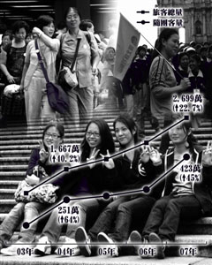 酒店雖然越開越多,但“清一色”是五星級(jí)或以上的高檔酒店,旅行團(tuán)房?jī)r(jià)一般為300多元,“便宜”房最受旅客歡迎。但隨著自由行越來越多,酒店不愁沒有客,一般只拿出40%以下的房間分給旅行社,“平”房買少見少,局限了內(nèi)地團(tuán)客的增幅。