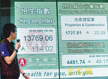 中新網(wǎng)2月10日電 據(jù)香港《文匯報(bào)》報(bào)道,雖然9日上證綜指繼續(xù)上升近2%以及美國(guó)道瓊斯指數(shù)上周五上升217.52點(diǎn),但港股表現(xiàn)則未如市場(chǎng)估計(jì)的理想,在高開(kāi)210點(diǎn)至13865點(diǎn)后后勁不繼,收市報(bào)13769.06點(diǎn),升114.02點(diǎn),不僅未能突破14000點(diǎn),而且連13800點(diǎn)也未能站定。