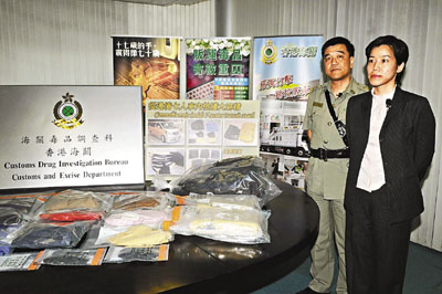 何指毒販利用陸路從內(nèi)地偷運(yùn)毒品來(lái)港的情況有上升之勢(shì),海關(guān)已加強(qiáng)檢查工作,并不時(shí)與警方聯(lián)合行動(dòng)。今年至本月13日止,海關(guān)在落馬洲口岸成功破獲4宗私家車運(yùn)毒案,檢獲的毒品價(jià)值達(dá)938萬(wàn)元,拘捕7人。她提醒青少年切勿被毒販利用運(yùn)毒,避免觸及刑法留下烙印,同時(shí)更不要吸食毒品,令身體機(jī)能受到傷害。
