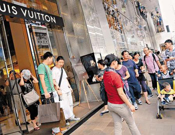 自由行常到的時代廣場,發(fā)言人也指,商場單日至少有15萬人次,人流升約10%,貴價鐘表同樣搶手,“有商戶指,不少內(nèi)地客早前因甲型流感不敢來港,趁黃金周一并來香港購物,人均消費(fèi)近萬元!
