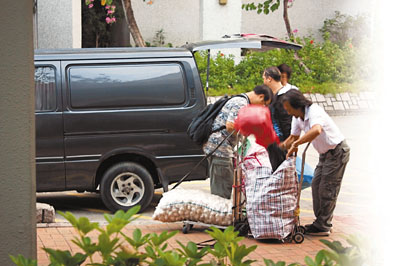 該報(bào)記者上周一連兩天在清晨6時(shí)許到羅湖口岸觀(guān)察,發(fā)現(xiàn)有大批水貨客利用手推車(chē)載運(yùn)一袋袋貨品,沿途通行無(wú)阻,沒(méi)有關(guān)員查問(wèn)水貨客。當(dāng)水貨客到達(dá)粉嶺,便將貨品交給停泊在粉嶺港鐵站外的貨車(chē)司機(jī),由于部分尼龍袋沒(méi)有封口,記者發(fā)現(xiàn)里面載滿(mǎn)一棵棵菜心,還有青瓜、豆腐、雞蛋等副食品。
