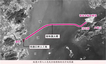 另外,據(jù)消息人士稱,大橋兩個口岸人工島設(shè)計由口岸用地范圍線至海堤頂外側(cè)預(yù)留寬度為25米,包括海堤寬度、海堤和場地地基處理過渡帶。根據(jù)潮位資料,確定人工島地面標(biāo)高為5米,填海后經(jīng)地基處理加固后交工面標(biāo)高為4.5米,將能防御珠江口300年一遇的洪潮。