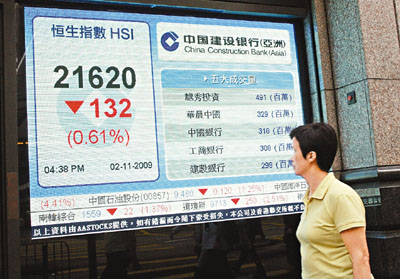 中新網(wǎng)11月3日電 據(jù)香港《文匯報(bào)》報(bào)道,恒指2日經(jīng)過上周結(jié)算后,并未結(jié)束波動(dòng)的情況。早段在美股上周五大跌250點(diǎn)的陰霾下,恒指急跌622點(diǎn),正當(dāng)大家以為港股會(huì)向下尋底后,令人意想不到的情況再次發(fā)生,午后在A股大升下,帶動(dòng)恒指跌幅大為收窄,恒指全日收?qǐng)?bào)21620點(diǎn),只跌132點(diǎn),成交額654億元。