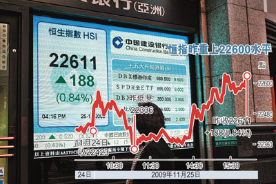 中新網(wǎng)11月26日電 據(jù)香港《文匯報》報道,內(nèi)地A、B股齊反彈,帶動恒指25日回升,但升幅遠比內(nèi)地股市小。上證A股25日反彈1.9%,上證B股更升5.1%,帶動恒指先跌后回升,全日收報22611.8點,升188.6點,升幅不夠1%,但成交增至787億元。