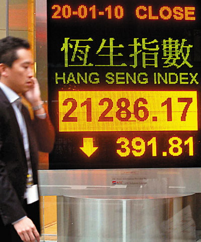 中新網(wǎng)1月21日電 據(jù)香港《文匯報(bào)》報(bào)道,恒指20日收?qǐng)?bào)21286點(diǎn),跌391.8點(diǎn),成交752億元。A股同樣下跌,上證跌95點(diǎn)報(bào)3151.8點(diǎn),跌幅近3%。國(guó)指則跌2.5%,報(bào)12,282點(diǎn),勁跌318.6點(diǎn)。