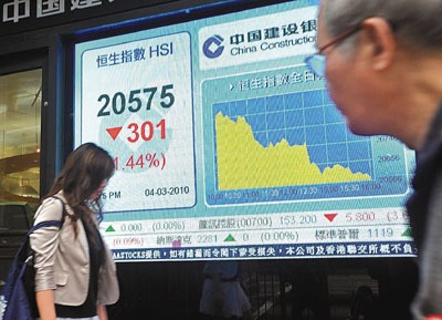 中新網(wǎng)3月5日電 據(jù)香港《文匯報(bào)》報(bào)道,內(nèi)地A股急挫創(chuàng)1個(gè)月來(lái)最大單日跌幅,跌市推手內(nèi)銀股普遍跌逾2%,港股4日午后受拖累沽壓加劇,恒指最終以全日最低位收市,報(bào)20575點(diǎn)跌301點(diǎn)或1.44%,成交總額632.71億元。